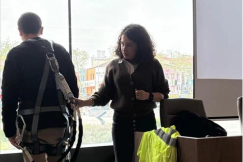 Personellere iş güvenliği kanunu ve ilgili yönetmeliklere ilişkin de bilgiler verilirken, yüksekte çalışma noktasında kullanılacak ekipmanlardan nelere dikkat edileceğine kadar da tüm detaylar paylaşıldı.