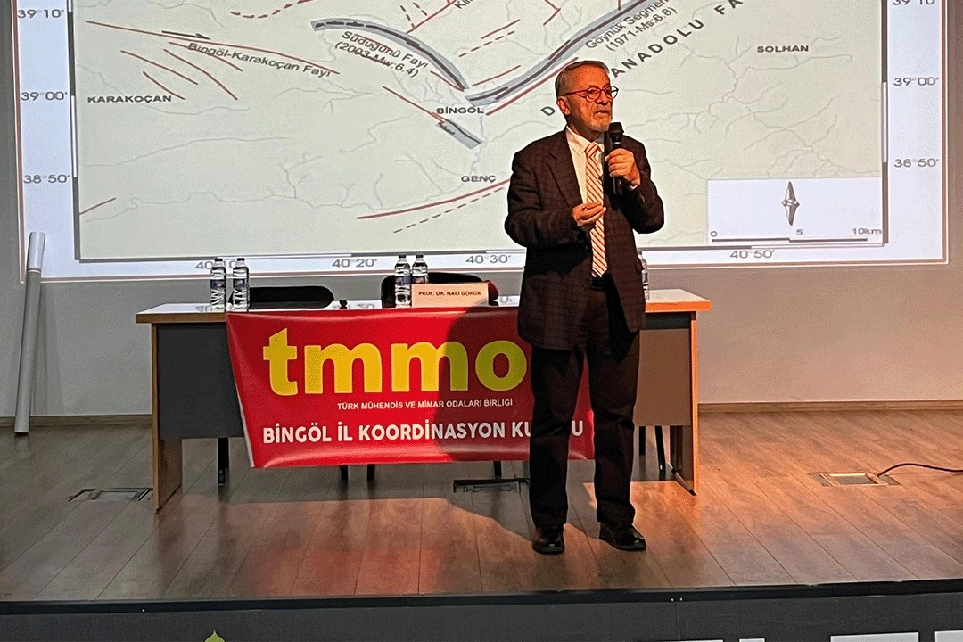 Bilim Akademisi Kurucu Üyesi Prof. Dr. Naci Görür, Türkiye Mühendis ve Mimar Odaları Birliği (TMMOB) İl Koordinasyon Kurulu tarafından düzenlenen ‘Bingöl'ün Depremselliği ve Deprem Dirençli Bingöl’ konulu konferansa katıldı. Bingöl Belediyesi konferans salonunda düzenlenen programa TMMOB İl Sekreteri Canfidan Boldaş, inşaat mühendisleri ve çok sayıda vatandaş katıldı.