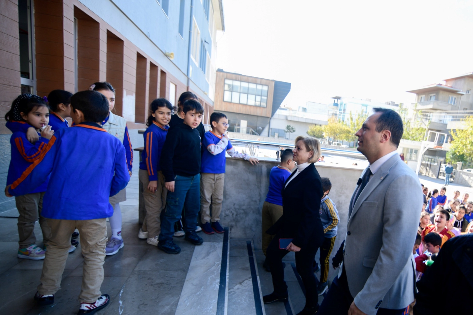 Kutlamalar, Cumhuriyet Meydanı’nda düzenlenen resmi törenle devam etti. İlçe Milli Eğitim Müdürlüğü ve CHP Bornova İlçe Başkanlığı, Atatürk Anıtı’na çelenk koyarak saygı duruşunda bulundu ve İstiklal Marşı okundu.