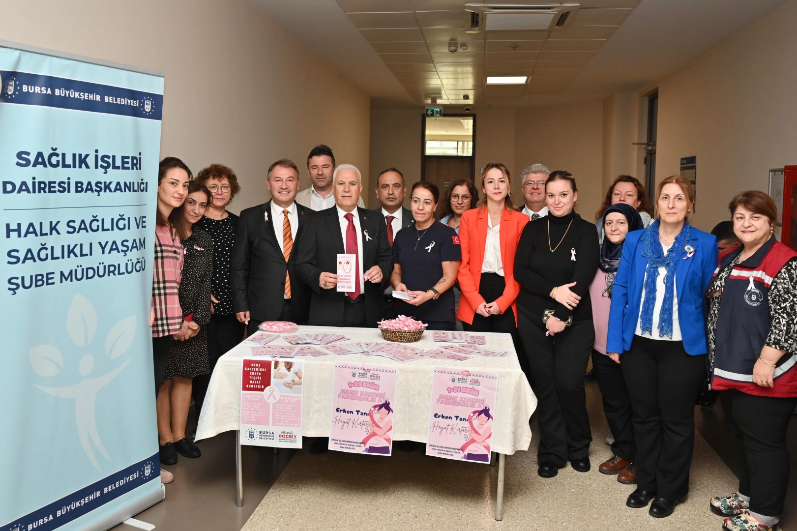 BURSA (İGFA) - Bursa Büyükşehir Belediyesi Sağlık İşleri Dairesi Başkanlığı, 1-31 Ekim tarihleri arasında yürütülen ‘Meme Kanseri Farkındalık Ayı’ etkinlikleri kapsamında belediye personeline pembe kurdele ve erken teşhisin önemini anlatan broşür dağıttı.