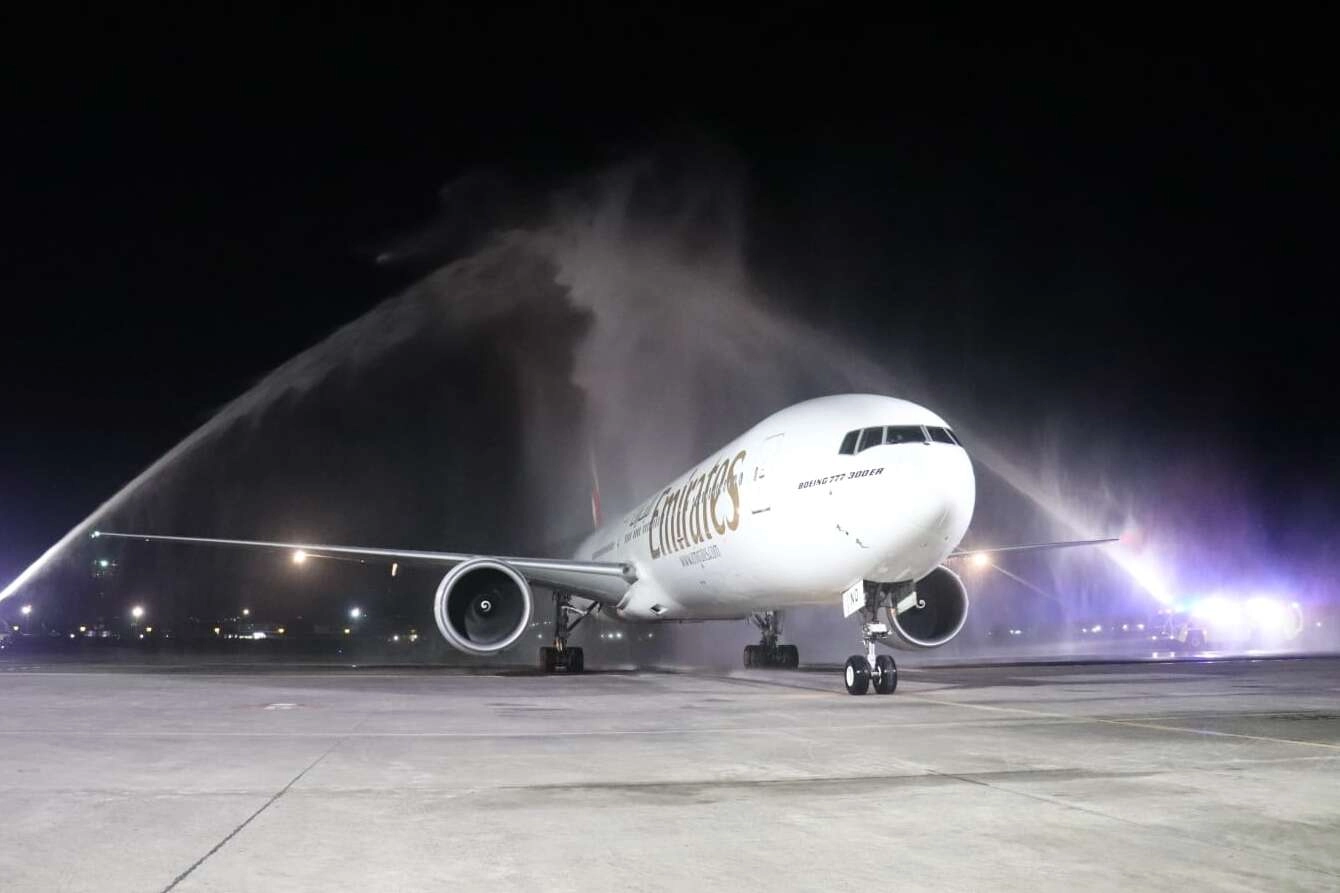 Emirates’in EK398 sefer sayılı uçuşu 1 Mayıs saat 22:20’de Denpasar Uluslararası Havalimanı’na iniş yaptı ve şirketin geri dönüşünü kutlamak için görkemli bir su takı ile karşılandı. Uçuşta görev yapan kabin ekibi ve yolcular havalimanında Bali’nin benzersiz kültürünü ve zengin mirasını yansıtan geleneksel joged bumbung dans performansıyla karşılandı ve ardından DPS Havalimanı’ndan temsilcilerin katılımıyla bir pasta kesme merasimi gerçekleştirildi.