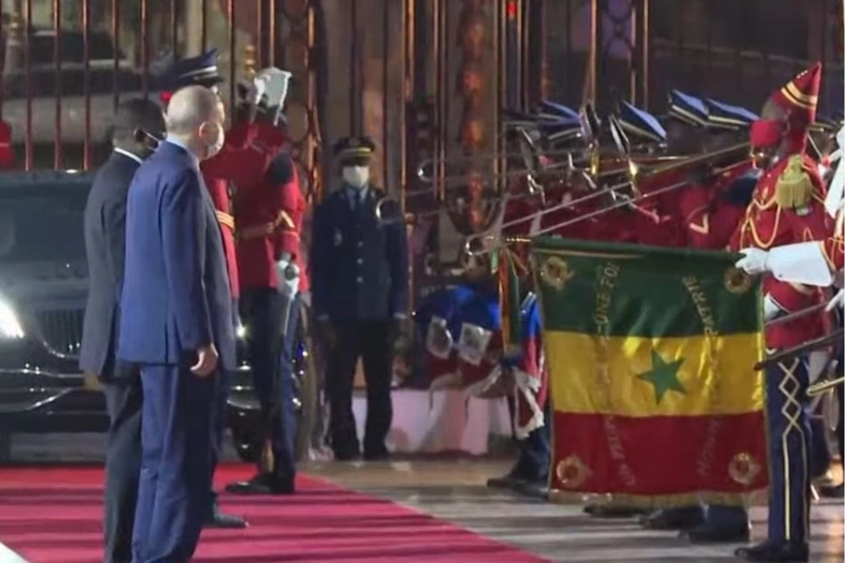 Karşılama töreninde, Türkiye'nin Dakar Büyükelçisi Ahmet Kavas ve büyükelçilik personeli de hazır bulundu.