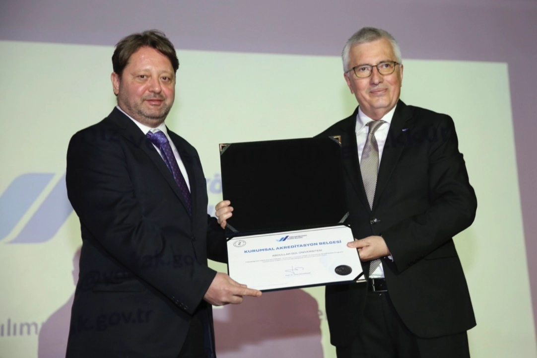 Konuşmaların ardından Abdullah Gül Üniversitesi’nin almaya hak kazandığı akreditasyon belgesi YÖKAK Başkanı Prof. Dr. Ümit Kocabıçak tarafından üniversite adına Rektör Prof. Dr. Cengiz Yılmaz’a verildi.