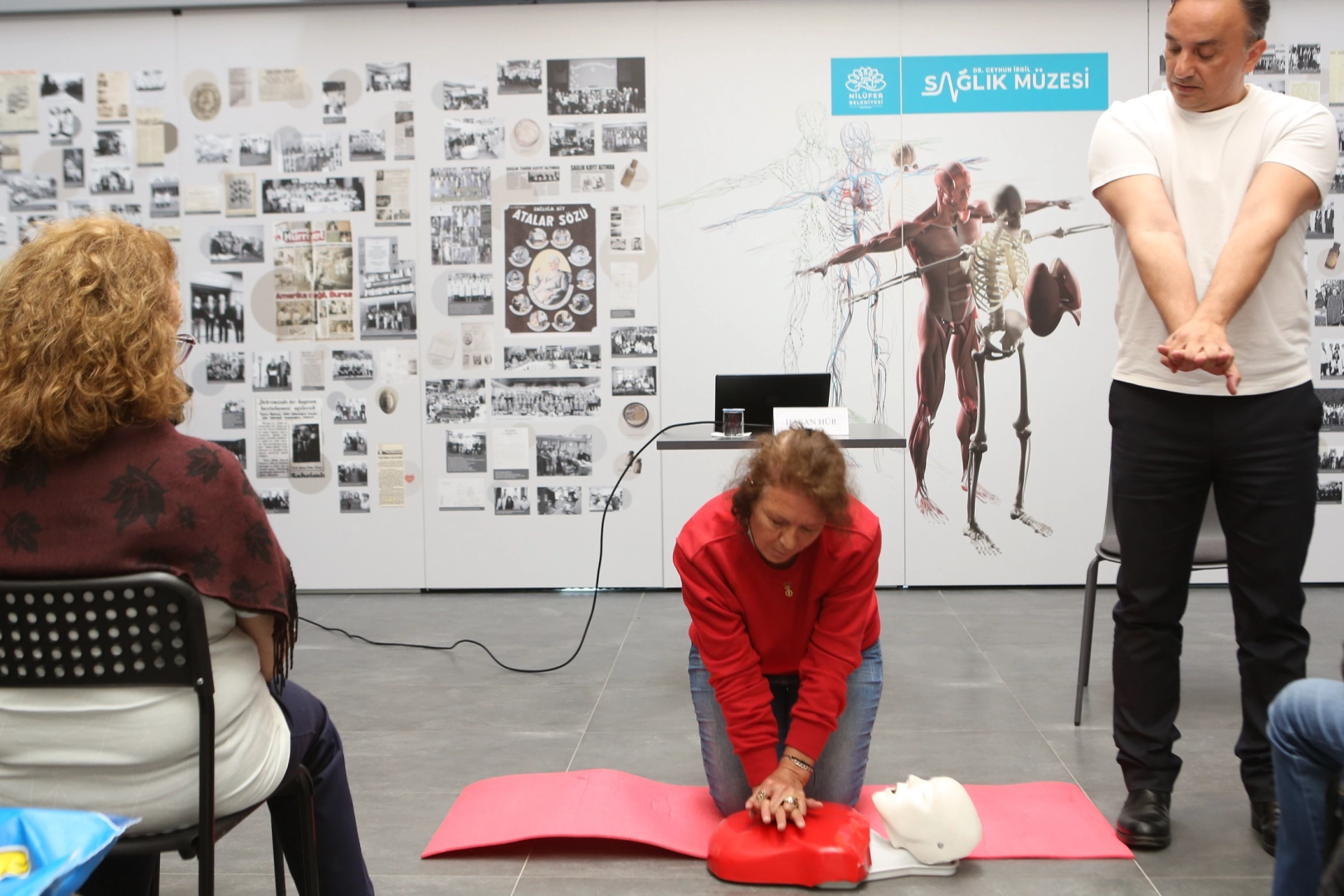 Etkinliğin sonunda Hasan Hür, maket üzerinde temel ilk yardım müdahalelerini uygulamalı olarak gösterdi.