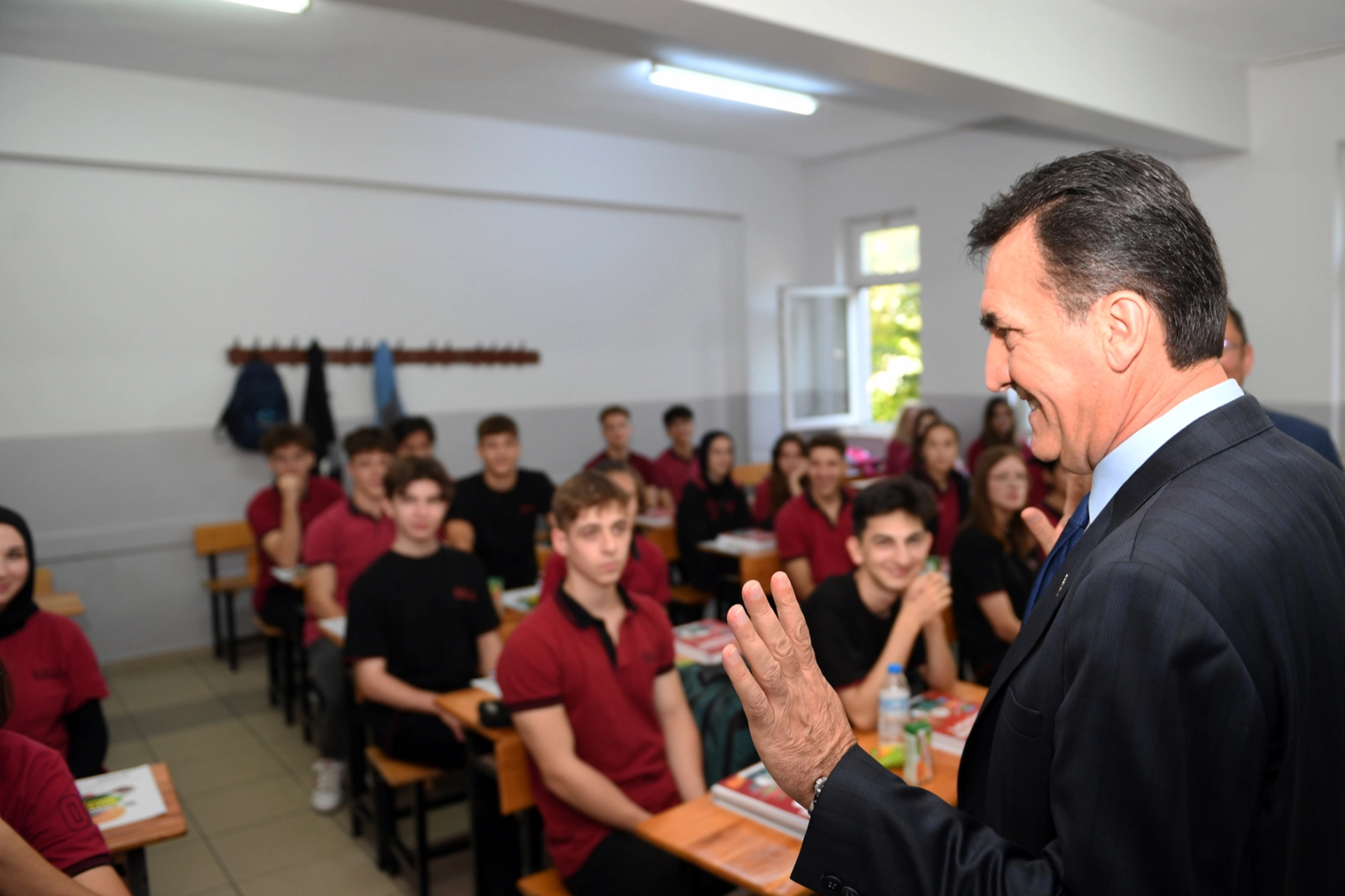 Daha sonra Osmangazi İlçe Milliği Eğitim Müdürü Gürhan Çokgezer ile birlikte sınıfları gezen Başkan Dündar, sohbet ettiği öğrencilere üniversiteye hazırlık yardım kitap seti hediye etti.