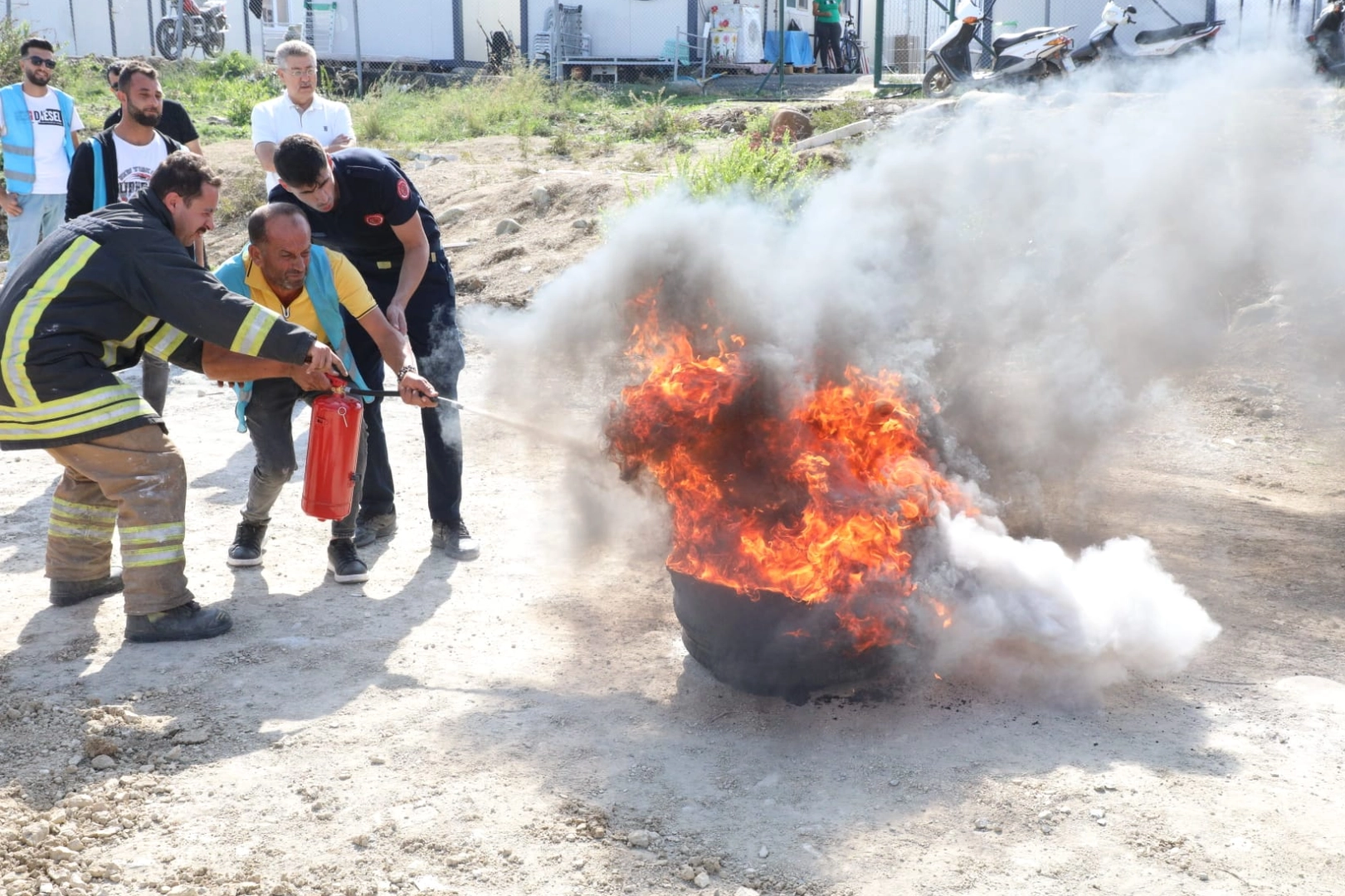HATAY (İGFA) - Hatay Büyükşehir Belediyesi İtfaiye Daire Başkanlığı tarafından konteyner kentlerde görevli personele yangından korunma, yangına müdahale etme ve acil durumlarda tahliye konularında eğitimler verildi.
