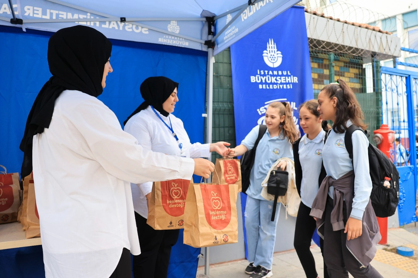 İSTANBUL (İGFA) - Ailelerin yaşamakta olduğu ekonomik zorluklara kayıtsız kalmayan İstanbul Büyükşehir Belediyesi (İBB), öğrenciler için ‘Okul Beslenme Desteği Projesi’ hazırladı. Proje kapsamında ilk ve ortaokula giden öğrencilerin sağlıklı gıdaya erişimini sağlamak için okul önlerinde öğrencilere beslenme desteği sağlanıyor.