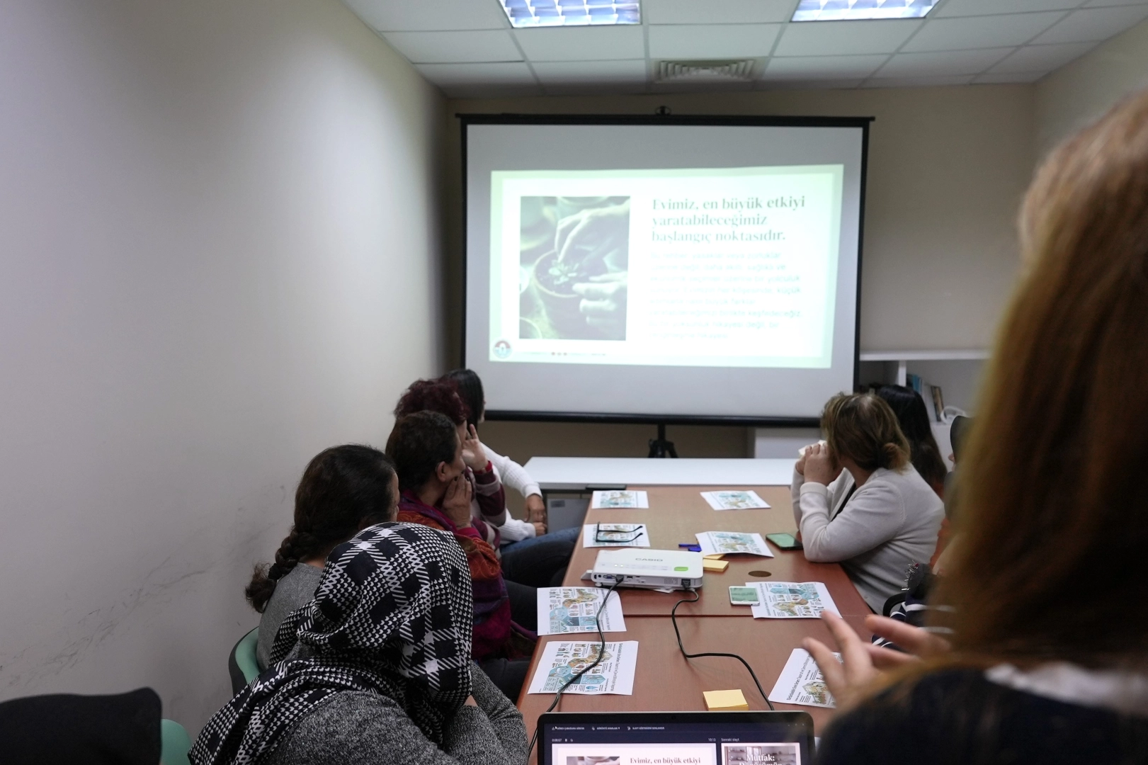 Belediye bünyesindeki İklim Değişikliği ve Sıfır Atık Müdürlüğü, seminerlerden çalıştaylara, okul ve okul öncesi eğitim yerlerine yapılan ziyaretlere kadar geniş bir yelpazede sürdürdüğü çevre bilinci çalışmalarını kadınlara yönelik programlarla güçlendiriyor.