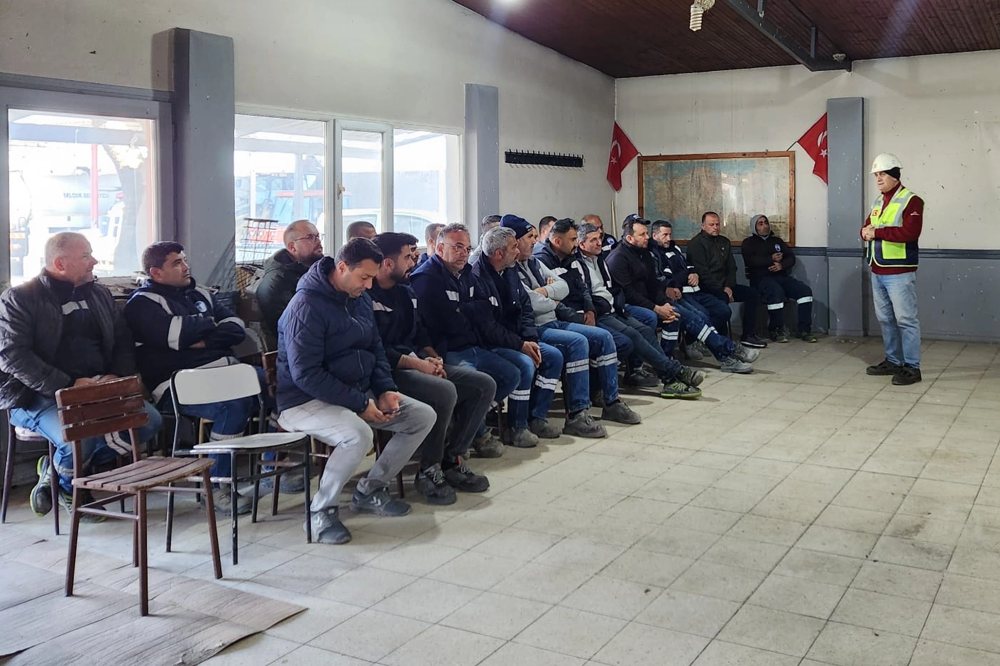 İZMİR (İGFA) - Efes Selçuk Belediyesi İklim Değişikliği ve Sıfır Atık Müdürlüğü’ne bağlı İş Sağlığı ve Güvenliği birimi Fen İşleri Müdürlüğü’nden gelen taleple İş Sağlığı ve Güvenliği Eğitimi düzenledi.