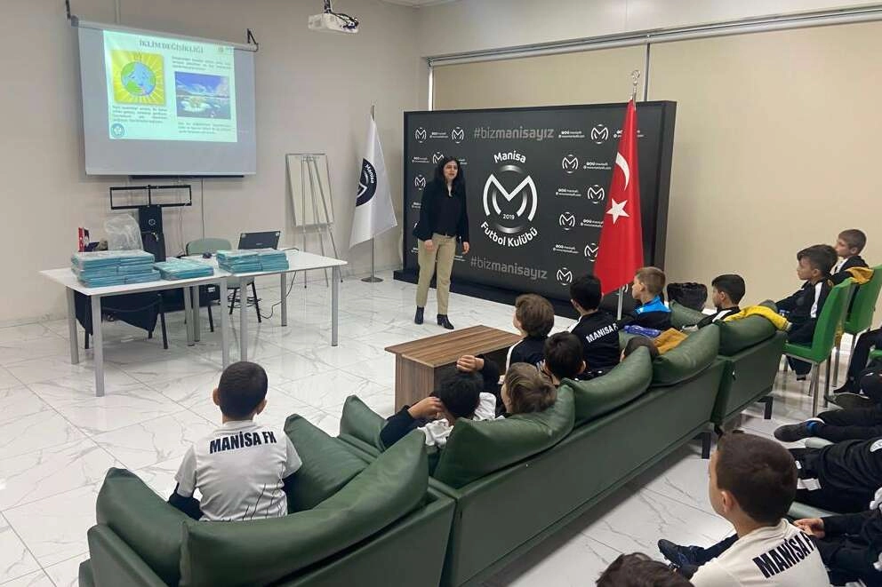 Bu kapsamda Çevre Koruma ve Kontrol Dairesi Başkanlığı, Manisa Futbol Kulübü Akademisi’nde eğitim gören 50 sporcuya çevre bilinci eğitimi verdi.