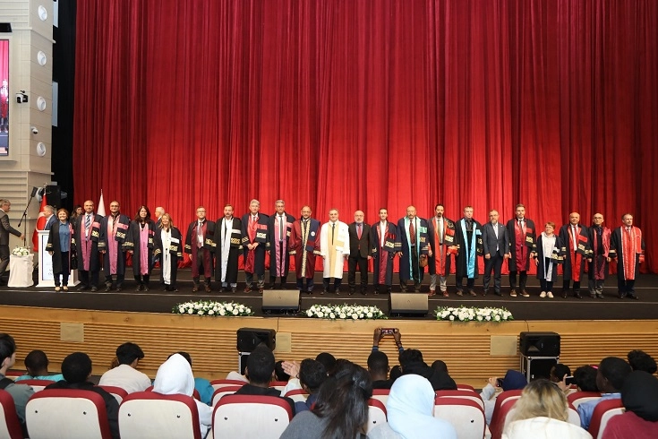 Vali Gökmen Çiçek’in konuşmasının ardından Rektör Prof. Dr. Fatih Altun Çevre, Şehircilik ve İklim Değişikliği Bakanı Mehmet Özhaseki’ye fahri doktora tevcihine ilişkin senato kararını okuyarak, Bakan Özhasekiye “Çevre, Sürdürülebilirlik ve Yerel Yönetimler” alanında fahri doktora unvanı belgesi takdim etti ve cübbe giydirdi.