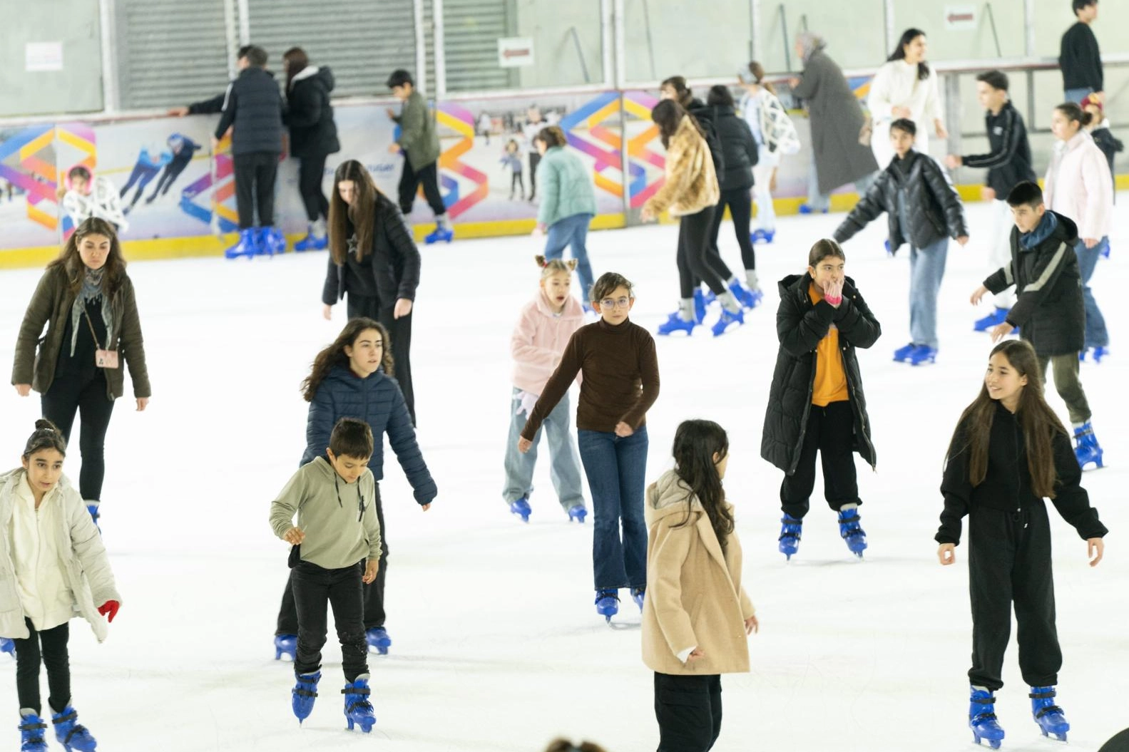 İZMİR (İGFA) - İzmir Büyükşehir Belediyesi’ne bağlı Bornova Aşık Veysel Rekreasyon Alanı’nda yer alan Buz Sporları Salonu, yarıyıl tatilinde öğrencilerin buluşma noktası oldu. 19–23 Ocak tarihlerinde ilköğretim ve ortaöğretim öğrencilerine ücretsiz hizmet veren tesiste, her gün 13.00–16.00 saatleri arasında seanslar düzenlendi. Türkiye’nin sayılı buz sporları tesisleri arasında yer alan salonda, uzman eğitmen ve antrenörler eşliğinde buz pateni deneyimi yaşayan binlerce öğrenci hem eğlendi hem de tatilin tadını çıkardı.