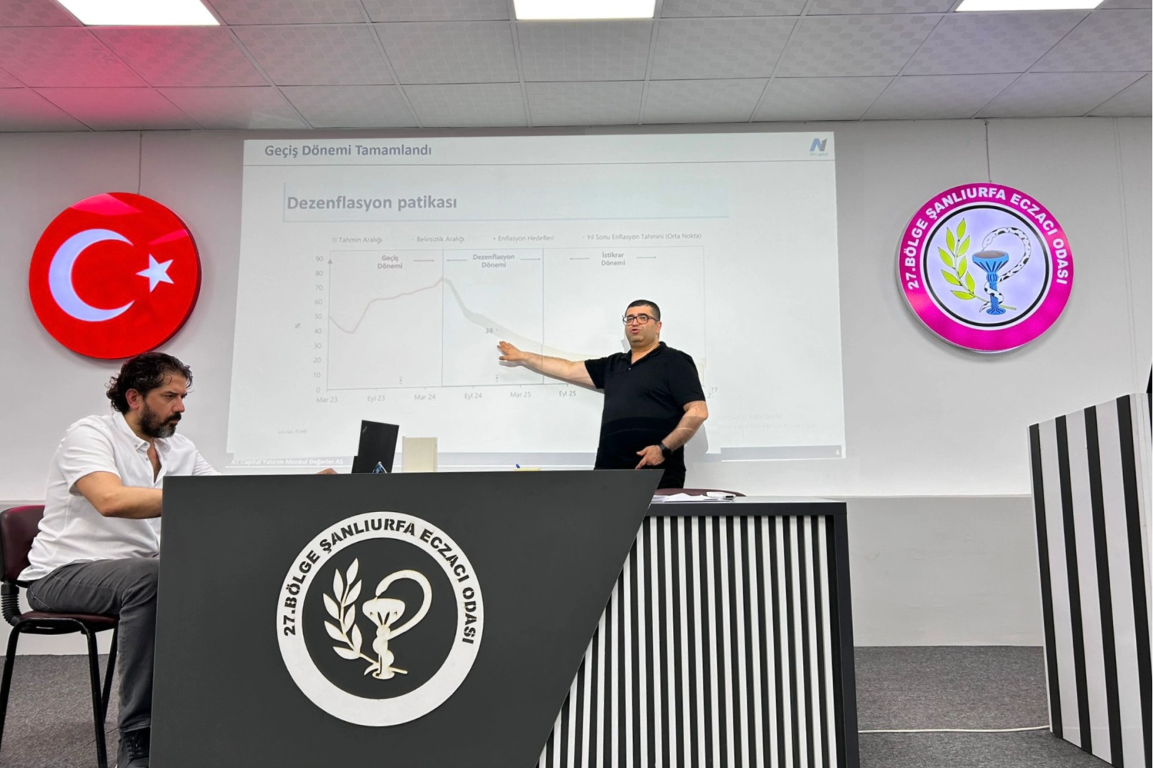 ŞANLIURFA (İGFA) - A1 Capital, borsa ve finans sektörüne ilişkin yatırımcıların aklındaki birçok soruyu, Şanlıurfa’da düzenlediği buluşmada cevaplandırdı. Piyasalara ve mevcut ekonomik konjonktüre ilişkin tüm güncel gelişmeleri öğrenmek isteyen yatırımcılar, 27.Bölge Şanlıurfa Eczacı Odası ev sahipliğinde, A1 Capital yatırım profesyonellerinin katılımı ile düzenlenen seminerde buluştu. Birçok katılımcının ilgiyle takip ettiği yatırımcı buluşmasında, A1 Capital Genel Müdür Yardımcısı Üzeyir Doğan ve Pardus Portföy Yönetimi Algo Direktörü Mustafa Keskintürk’te konuşmacı olarak yer aldı.