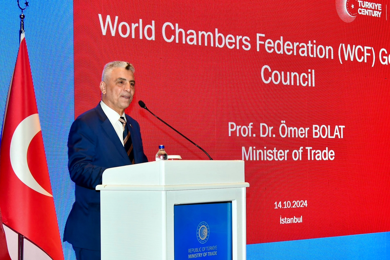 Ticaret Bakanı Bolat, Türkiye'nin ekonomide son dönemde uyguladığı programa işaret ederek, "Çok iddialı bir program takip ediyoruz. 'İstikrarlı stabilizasyon' diyoruz buna ekonomide. Stabil büyüme, düşük enflasyon ve ihracatın önderlik ettiği bir büyüme modeli. Buna Orta Vadeli Program diyoruz. Geçen yıl başladık ve önümüzdeki 3 yılı bu programı takip ederek tamamlayacağız. Hedefimiz, 2027'ye kadar Türkiye'nin GSYH'si 1,7 trilyon dolara çıkmalı ve ortalama büyüme oranı yüzde 4 olmalı. Mal ihracatında 320 milyar dolar, hizmet ihracatında 160 milyar dolar hedefliyoruz." diye konuştu.