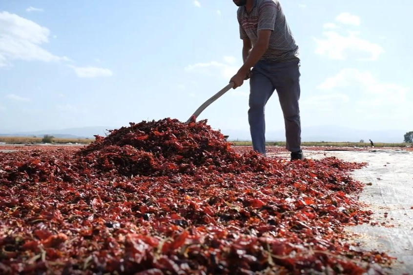 BURSA (İGFA) - 1940 yılından günümüze ulaşan ata tohumları, mayıs ayının ilk haftalarında tarlayla buluşup ilk can suları veriliyor, eylül ayına kadar Mustafakemalpaşa’nın verimli topraklarında yetişen kırmızı biberler, üreticiler tarafından özel olarak toplanarak kurutulmak üzere kesiliyor. 6 gün boyunca güneş ile kuruyan biberler kıyılmak üzere yeniden toplanıyor.