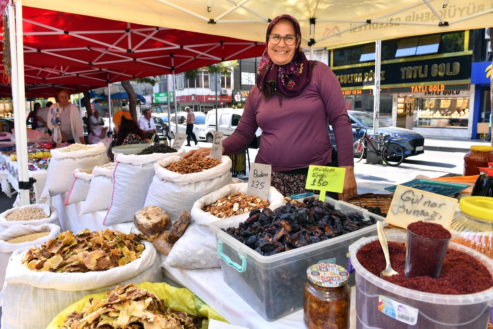 Üretici Neşe Kara ise, “Salça, zeytin, turşu, zeytinyağı, yani bir mutfakta ne lazımsa satıyorum. 3 yıldır yapıyoruz, çok da memnunuz” dedi. Büyükşehir’in özellikle kadınlara olan desteğinin çok iyi olduğunu vurgulayan Kara, “Her şeyde bize yardımcı oluyorlar. Mut’tan buraya geliyoruz, her şeyi onlar sağlıyor. Bize yerimizi de ayarlıyorlar” ifadelerini kullandı.