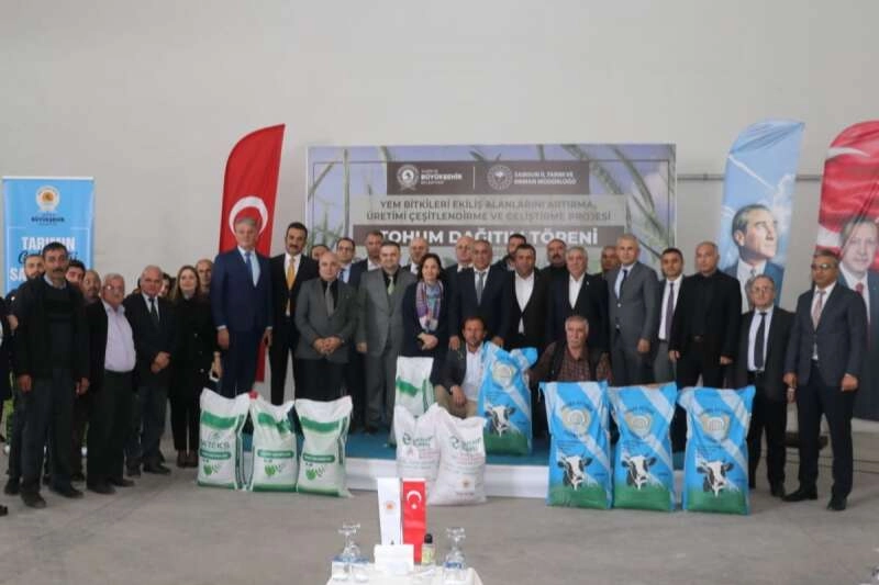 2022 yılı için 54 ton ilkbaharda, 79 ton sonbaharda olmak üzere toplam 133 ton yem bitkisi tohumu dağıttıklarını da ifade eden Başkan Demir, "Bu proje ile 3 bin 187 çiftçimiz ile 113 bin dekar alanda ekim yapılacak. Toplam proje bedeli yaklaşık 6 milyon TL’dir. Büyükşehir Belediyesi olarak üreticilerimize desteğimiz daha da büyüyerek devam edecektir. Çiftçilerimize ‘üretim sizden, destek bizden’ diyoruz. Çiftçilerimizin ürünleri bol, kazançları bereketli olsun" ifadelerini kullandı.