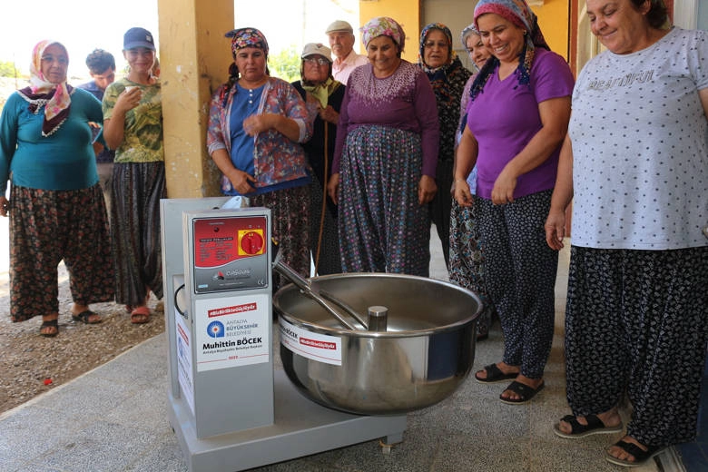 ANTALYA (İGFA) - Kırsal kalkınmanın sağlanması ve tarım sektörünün desteklenmesi için yürüttüğü projelerle dikkat çeken Antalya Büyükşehir Belediyesi, özellikle kadınlara yönelik üretim odaklı ekipman desteklerini de aralıksız sürdürüyor. Bu kapsamda Tarımsal Hizmetler Dairesi Başkanlığı’nca “Unu sizden yoğurması bizden” kampanyası kapsamında Serikli kadınlara hamur yoğurma makinesi teslim edildi.
