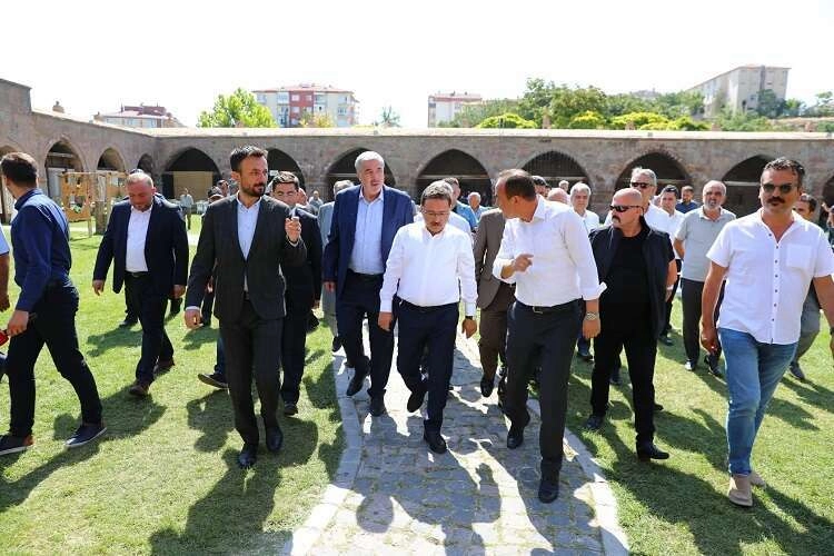 Buradan Tarihi Karamustafa Paşa Kervansarayı'nın yanında bulunan Arasta Çarşısı’nda yapılan düzenlemeleri inceleyen Vali Çiçek, çarşı esnafını tek tek gezerek sohbet etti.