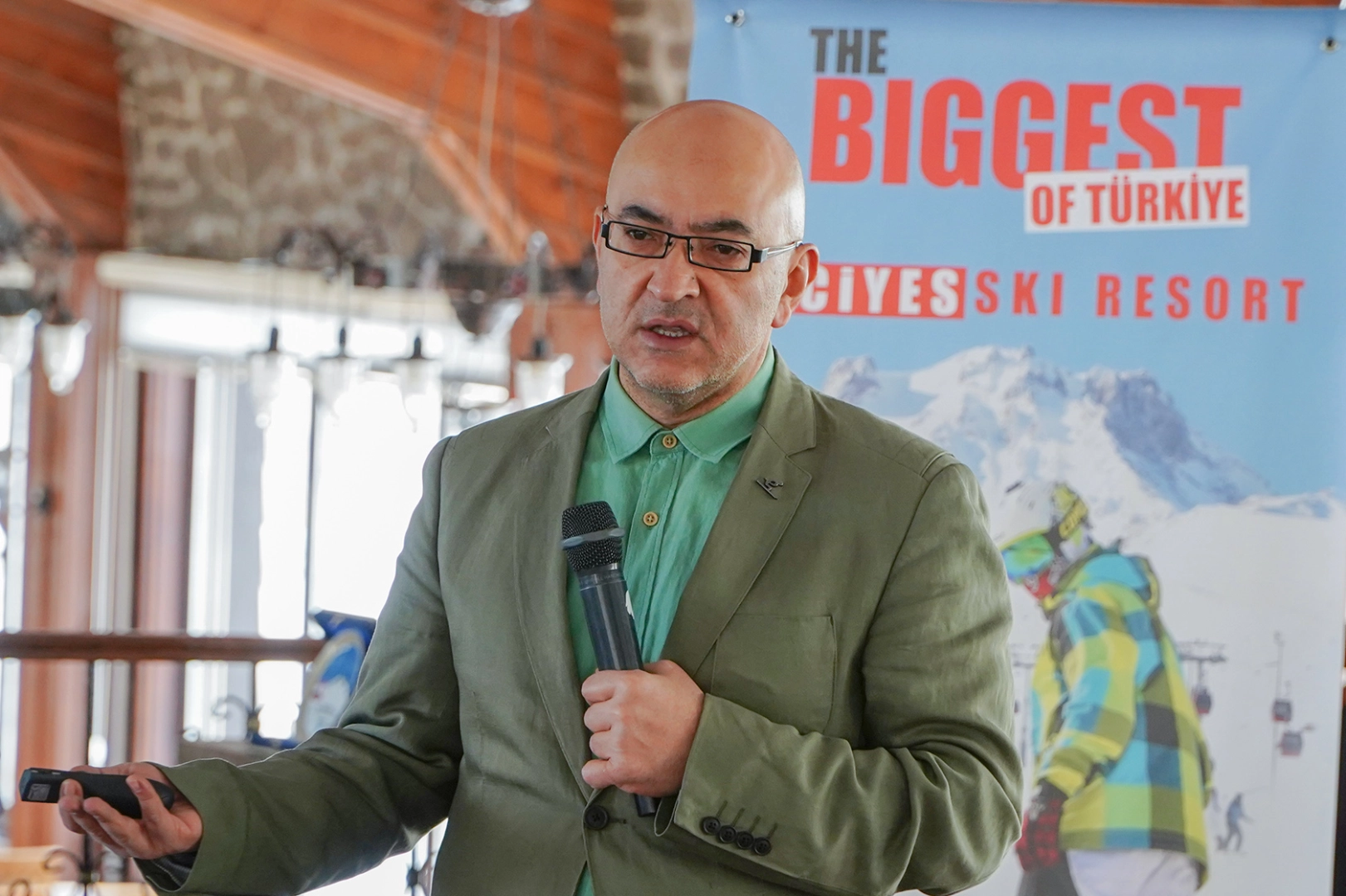 Kayseri Erciyes A.Ş. Yön. Kur. Bşk. Dr. Murat Cahid Cıngı, Kıbrıs Türk Turizm ve Seyahat Aceteleri Birliği’nden gelen seyahat acente ve tur operatörüne, Erciyes ile ilgili geniş bir sunum yaparak detaylı bilgiler verdi. Turizm profesyonelleri daha sonra dağda bulunan tesisleri gezerek Erciyes’in turizm değerlerini keşfetti.