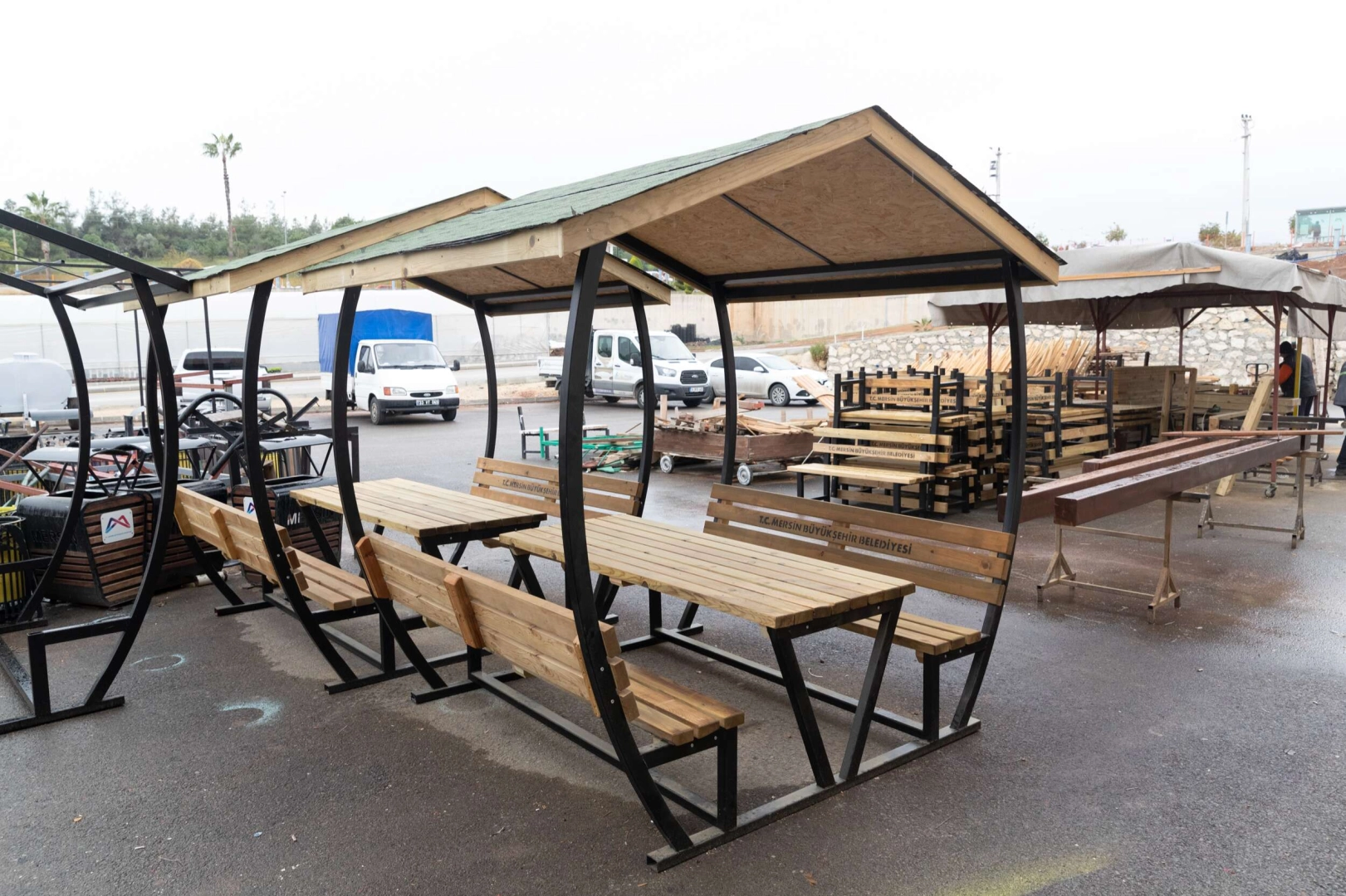 MERSİN (İGFA) - Marangoz ve Kaynak Atölyesi’nde çalışan toplam 9 usta kaliteli ve düşük bütçeli kent mobilyaları üretiyor. Bank, kamelya, ahşap satış arabası, piknik masası, ahşap büfe, özel günler için figür, saksı, salıncak, fidan için herek gibi ürünler üreten ustalar işe tomrukları keresteye dönüştürmekle başlıyor. Yapılacak ürünün türüne göre keresteyi boyutlandıran ve ürünü hazırlayan marangozhane ustalarından sonra devreye Kaynak Atölyesi ustaları giriyor. Yine Kaynak Atölyesi’nde ürüne uygun üretilen metal konstrüksiyonların montaj işlemi yapıldıktan sonra ürün tamamlanmış oluyor. İhtiyaç ve talep odaklı ürünler üreten ustalar, ortaya birbirinden kalite ürünler çıkarıyor.