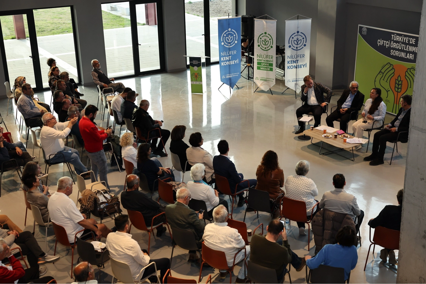 Söyleşiye Nilüfer Belediye Başkan Yardımcıları Bukle Erman ve Zerrin Güleş, Nilüfer Kent Konseyi Başkanı Mustafa Berkay Aydın, Kent Konseyi Çevre Meclisi Başkanı Semiha Öztan, NİLKOOP Yönetim Kurulu Başkanı Süleyman Ayyılmaz, belediye meclis üyeleri ve çok sayıda vatandaş katıldı.