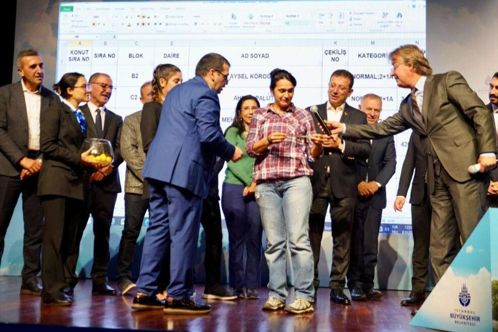 İSTANBUL (İGFA) - İstanbul Büyükşehir Belediyesi (İBB) iştiraki KİPTAŞ tarafından 31 Mayıs 2021’de temeli atılan KİPTAŞ Tuzla Meydan Evleri için “Hak Sahibi Daire Belirleme Kura Çekilişi” gerçekleştirildi. Fatih’teki Ali Emiri Efendi Kültür Merkezi’nde, noter huzurunda gerçekleştirilen çekiliş öncesinde İBB Başkanı Ekrem İmamoğlu ve KİPTAŞ Genel Müdürü Ali Kurt birer konuşma yaptı. Kendisinin siyaset öncesi mesleği olduğu için inşaat ve KİPTAŞ’la ilgili konularla birebir ilgilendiğini belirten İmamoğlu, “Biraz da onları yoruyorum. Ücretsiz de danışmanlık yapıyorum onlara bu arada” esprisini yaptı. “Yaşamının yaklaşık kırk küsur yılı o alanda geçmiş bir insan olarak; bütün bilgimi, görgümü, enerji bu anları aktarmaya gayret ediyorum” diyen İmamoğlu, “Yaşadığımız işte ekonomik sorunlar, yaşadığımız o teknik sorunlar, insanların konut ihtiyacının giderilmesi, insanların artık tırnak içinde olan barınma ihtiyacının giderilmesi tarifinin yapıldığı bu ülkede, bu sorunu hep birlikte çözmek zorundayız. Ciddi adımlar atılmak zorunda” ifadelerini kullandı.
