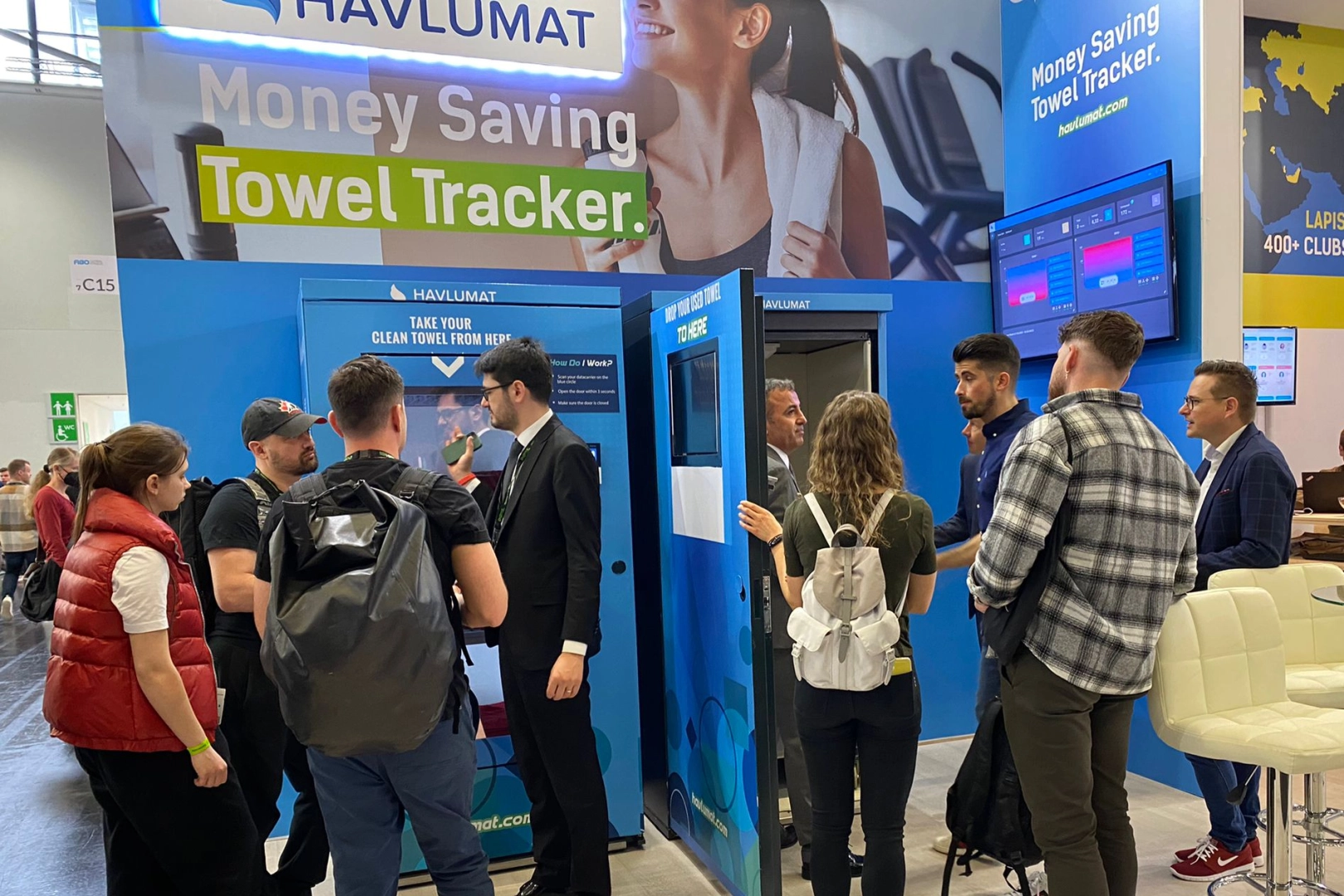 Almanya’nın Köln şehrinde düzenlenen dünyanın en büyük fitness, sağlık ve spor fuarı FIBO'da lansmanı gerçekleşen ve katılımcılar tarafından büyük ilgi gören para kazandıran havlu takip sistemi Havlumat, fitness, spa, yoga salonları ve otellerdeki havlu operasyonlarının otomatikleşmesini sağlıyor.