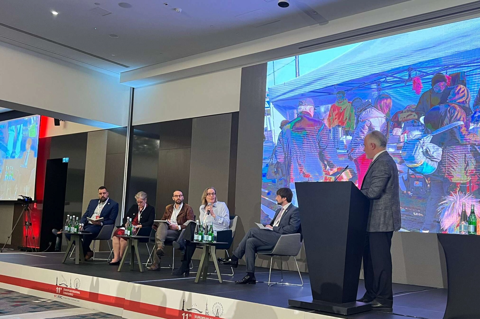 Konferansın son gününde Türk Kızılay Genel Başkanı ve IFRC Avrupa ve Orta Asya Başkan Yardımcısı Dr. Kerem Kınık ile Polonya Kızılhaçı Başkan Yardımcısı Jerzy Zaborowski 3 aydır devam eden ve 5 milyon sivilin ülkeyi terk etmesine sebep olan Ukrayna krizini konuştu. Savaşın başladığı günden bu yana yiyecek, barınma, ilaç, hijyen ve temel malzemelerle gerçekleştirilen insani yardımlar hakkında bilgi veren Dr. Kerem Kınık, dünyada en fazla mülteci ve sığınmacıya ev sahipliği yapan Türkiye’de 10 yıldan uzun süredir uygulanan Kızılaykart Programı ve nakit desteğine ilişkin tecrübelerini paylaştı.