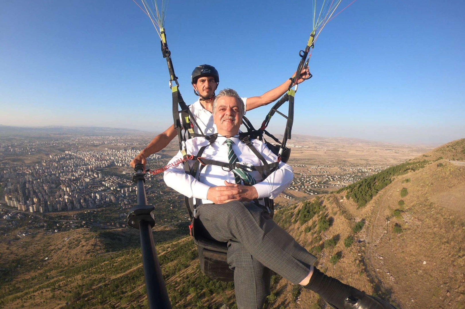 Mehmet UZEL (KAYSERİ İGFA) Kayseri Valisi Gökmen Çiçek ve İl Jandarma Komutanı Yüksel Yiğit’in ardından MHP İl Başkanı Adnan İncetoprak’da turizme destek vermek için yamaç paraşütü ile uçtu.