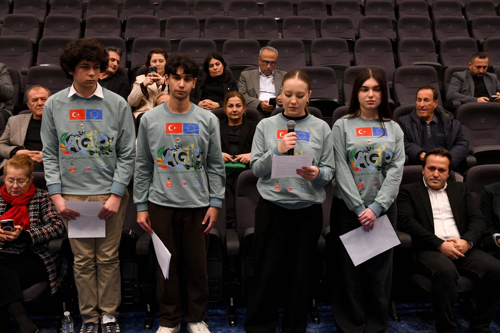 AGİP adına konuşan öğrencilerden Ezgi İldaş, iklim krizinin gençler için soyut bir kavram olmadığını vurguladı. İldaş, “Bizim için iklim krizi, sokağa çıkılamayan sıcak hava dalgaları, kuruyan su kaynakları ve belirsiz bir gelecek demek” dedi.