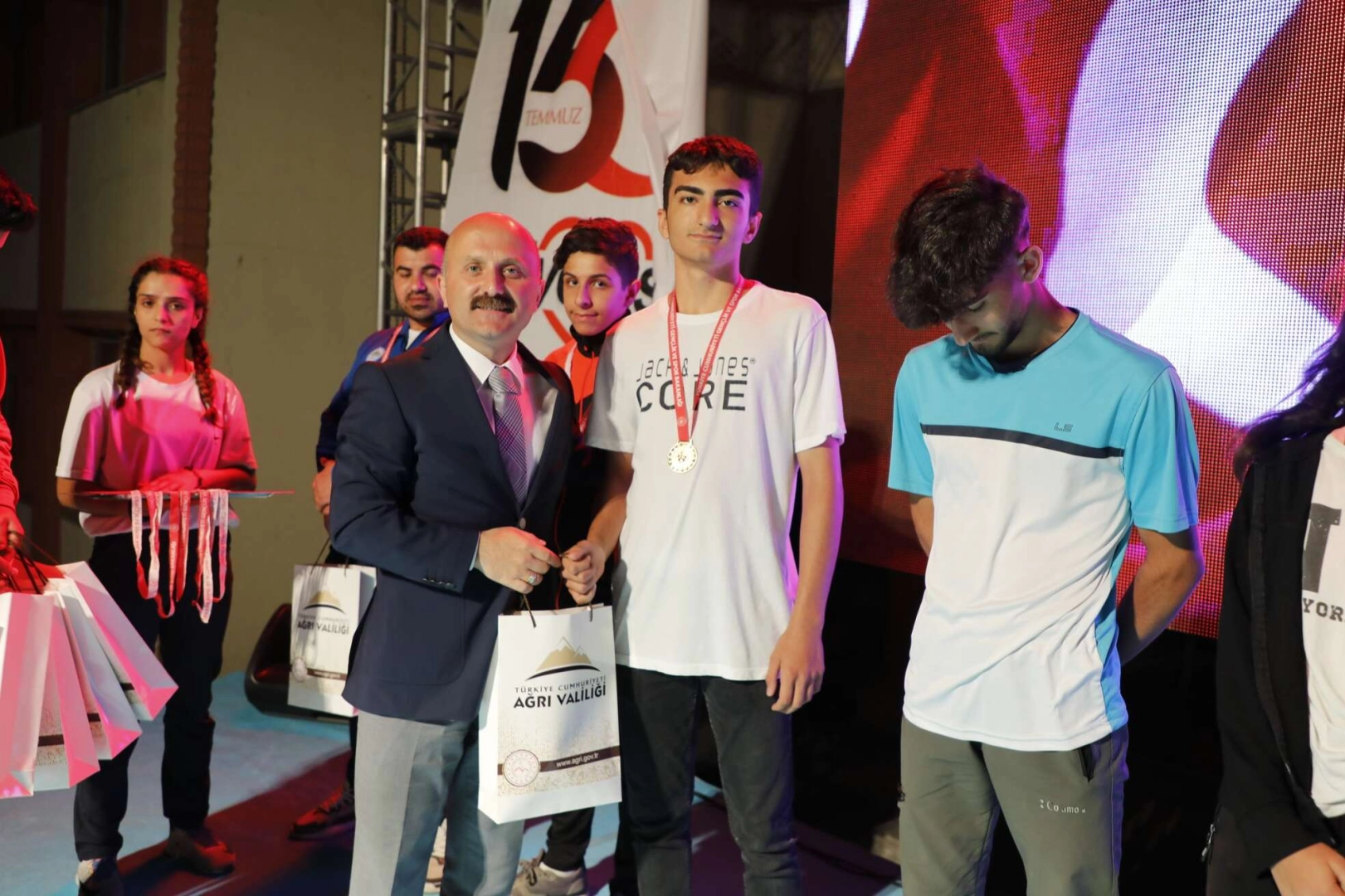 Vali Dr. Osman Varol’un konuşmaları sonrasında programımız, 15 Temmuz Demokrasi Zaferi ve Şehitlerini Anma Koşusu, badminton, halter ve tenis müsabakalarında dereceye giren sporcularımıza ödüllerini takdim edilmesi ile devam etti.