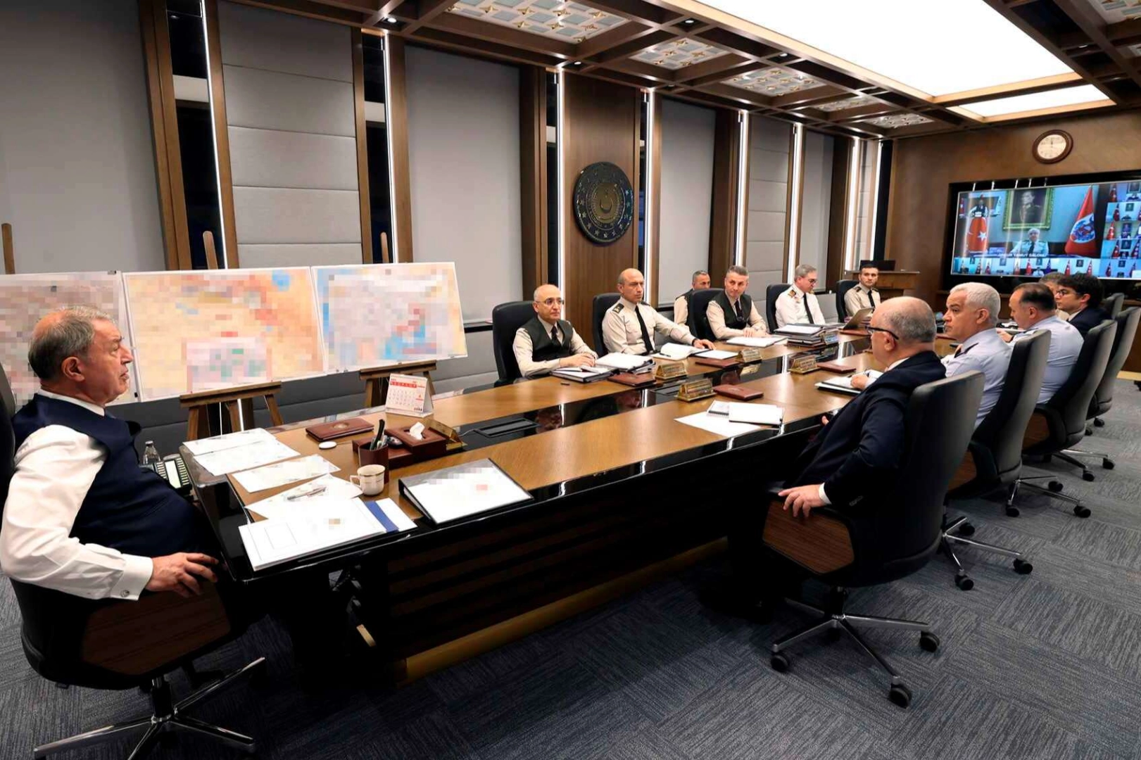 ANKARA (İGFA) - Millî Savunma Bakanı Hulusi Akar başkanlığında Genelkurmay Başkanı Org. Yaşar Güler, Kara Kuvvetleri Komutanı Orgeneral Musa Avsever, Deniz Kuvvetleri Komutanı Oramiral Adnan Özbal, Hava Kuvvetleri Komutanı Orgeneral Hasan Küçükakyüz, Bakan Yardımcısı Yunus Emre Karaosmanoğlu ve birlik komutanlarının katılımıyla video telekonferans toplantısı düzenlendi.