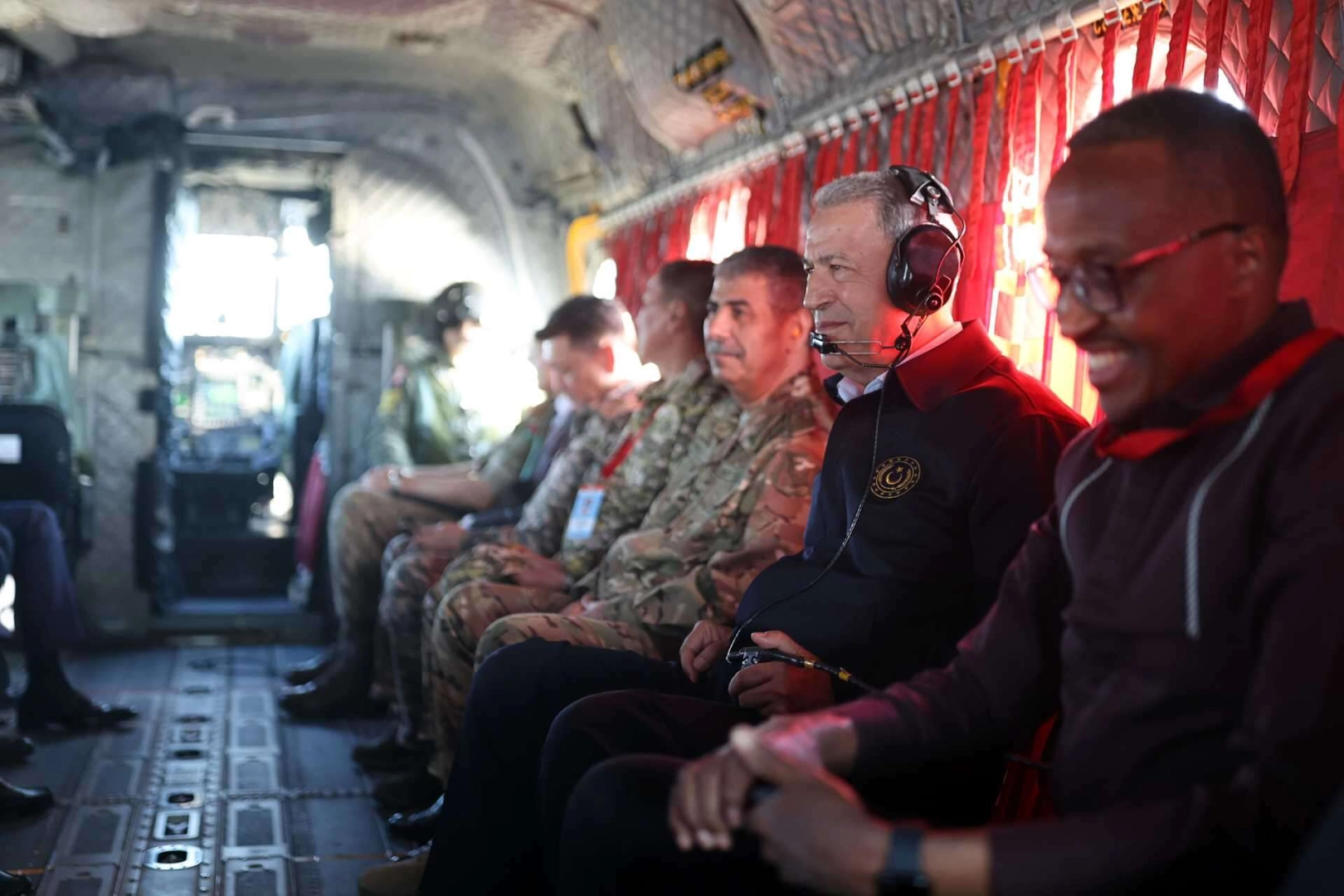 İZMİR (İGFA) - Millî Savunma Bakanı Hulusi Akar beraberinde dost ve kardeş ülkelerin Savunma Bakanları ve Genelkurmay Başkanları’nın yanı sıra TSK Komuta Kademesi ile #EFES2022 Tatbikatı’nın gece safhasını takip etmek üzere CH-47 helikopteri ile Doğanbey Tatbikat Alanı’na geldi.