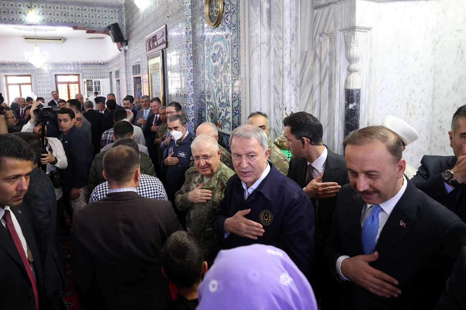 Milli Savunma Bakanlığı'ndan aktarılan habere göre, Dergâh Camisinin girişinde yoğun ilgiyle karşılanan Bakan Akar ve Komutanlar bayram namazının ardından vatandaşlarla bayramlaştı.