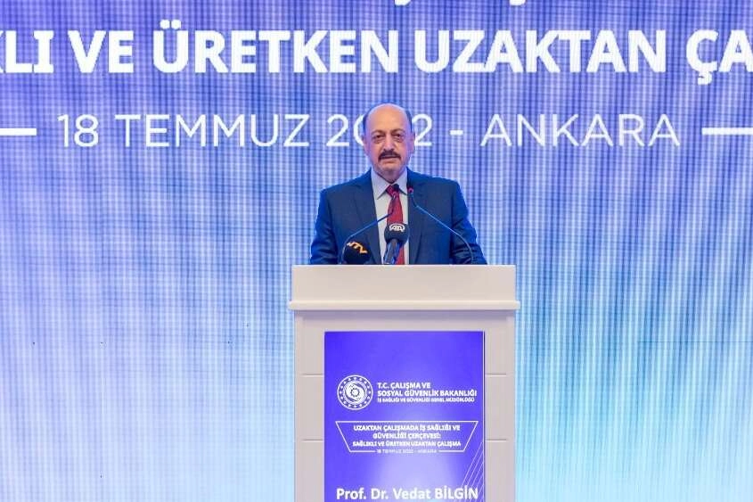 ANKARA (İGFA) - Çalışma ve Sosyal Güvenlik Bakanı Vedat Bilgin, İş Sağlığı ve Güvenliği Genel Müdürlüğü tarafından düzenlenen “Uzaktan Çalışmada İş Sağlığı ve Güvenliği Çerçevesi: Sağlıklı ve Üretken Uzaktan Çalışma” konulu panele katıldı.