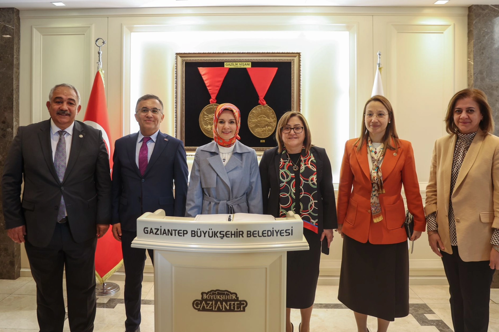 GAZİANTEP (İGFA) - Bir dizi temaslar için Gaziantep’e gelen Aile ve Sosyal Hizmetler Bakanı Mahinur Özdemir Göktaş, Büyükşehir Belediyesi’ne ziyarette bulundu. Şeref defterini imzalayan Bakan Göktaş, daha sonra Başkan Fatma Şahin ile görüştü.
