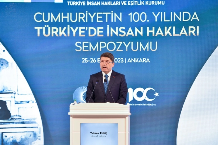Türkiye'nin, yakın geçmişte hak ve özgürlüklerin kamu otoritesi tarafından yoğun şekilde çiğnendiği, toplumun çoğunluğunun ötekileştirildiği bir dönemi yaşadığını söyleyen Adalet Bakanı Yılmaz Tunç, Cumhuriyet tarihinde siyasi hayatın, darbe, muhtıra ve anti demokratik uygulamalarla kesintiye uğratıldığını ifade etti.