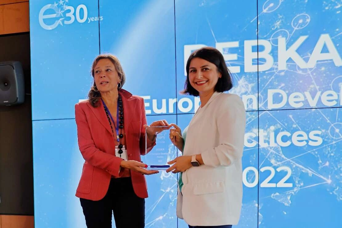 Belçika’nın başkenti Brüksel’de düzenlenen törende En İyi Uygulama Örneği Ödülü’nü BEBKA Yatırım Destek Ofisi Uzmanı Nalan Tepe Şençayır, EURADA Başkanı Roberta Dall’olio’nun elinden aldı.