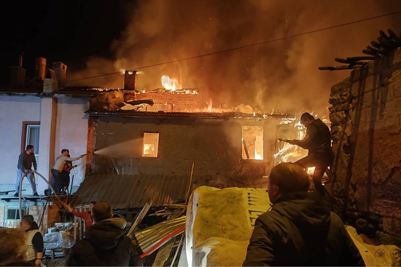 Vatandaşların eşyalarını koydukları ancak yaşam alanı olarak kullanmadıkları binada başlayan yangın rüzgarın da etkisiyle alevlerin çevredeki iki eve de sıçramasına neden oldu.