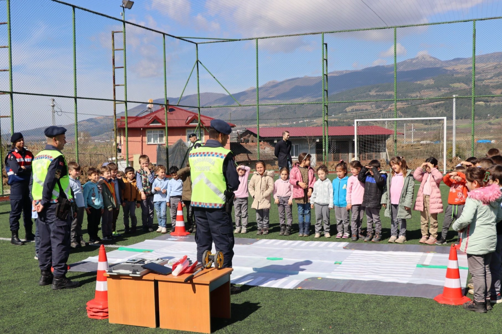 BİLECİK (İGFA) - Bilecik'in Osmaneli ilçesinde Hisarcık Beşevler İlkokul ve Ortaokulunda öğrenim gören miniklere jandarma tanıtıldı. 176 öğrencinin katıldığı bilgilendirme faaliyetinde Trafik Şube Müdürlüğü tarafından genel trafik kuralları,ve yayaların uyacakları trafik kuralları, Asayiş Şube Müdürlüğü tarafından güvenli internet kullanımı ve kişisel güvenlik, Aile Sosyal Hizmetler İl Müdürlüğü personeli tarafından mahremiyet eğitimi verildi.