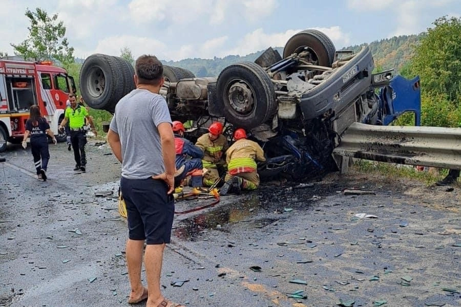 Edinilen bilgiye göre seyir halindeki tır sürücüsü direksiyon hakimiyetini kaybedip karşı şeride geçti. Karşı şeritte başka bir otomobile çarpan tır aracı çarpışmanın etkiyle bariyerlerin üzerine devrildi.
