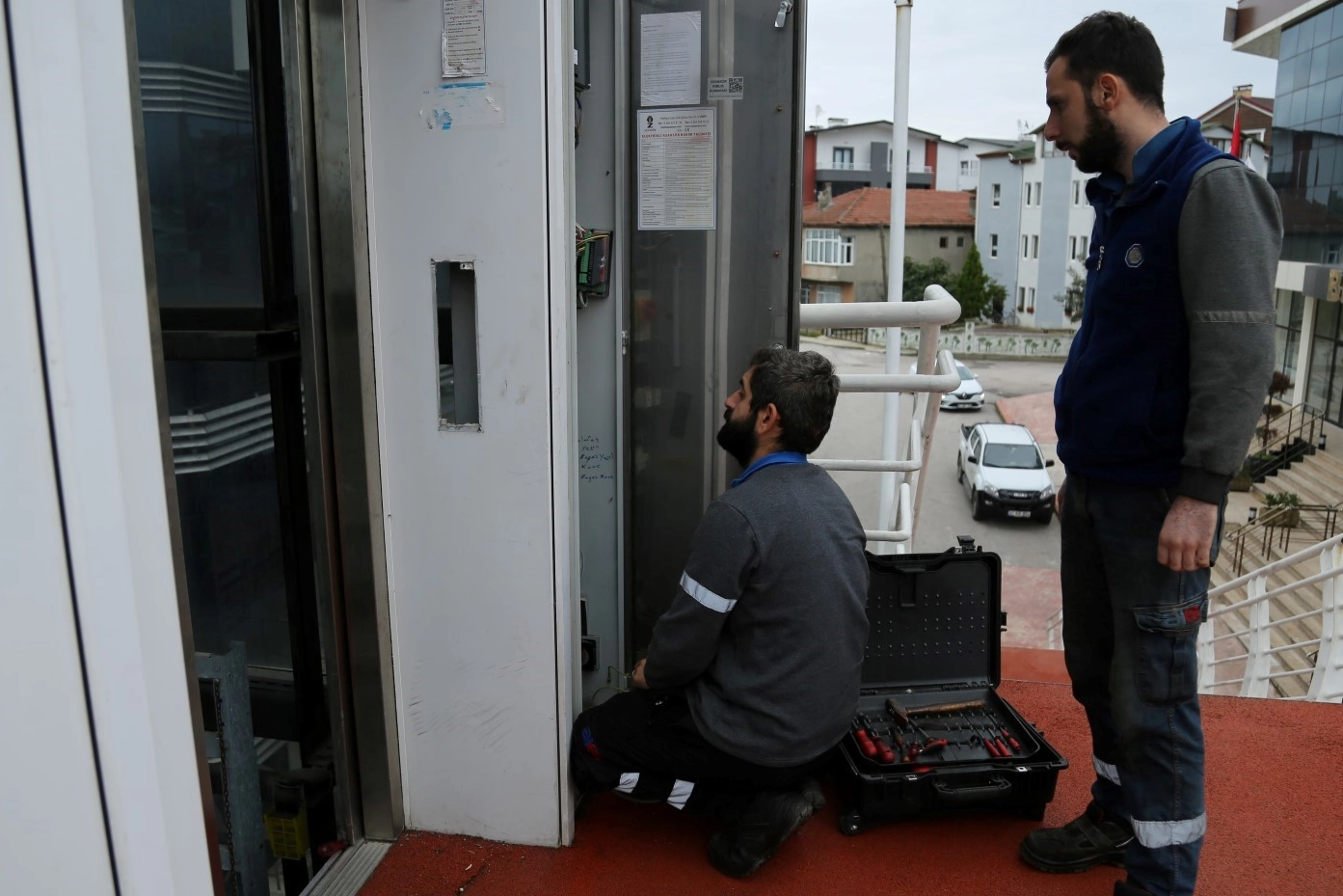 Yapı Kontrol Dairesi Başkanlığı Enerji, Aydınlatma ve Mekanik İşler Şube Müdürlüğü ekipleri, asansörde gerekli güvenlik önlemlerini alarak asansörü kapattı.