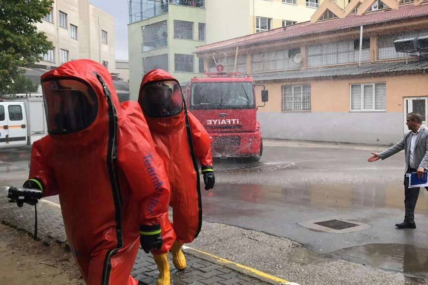 Tatbikat kapsamında senaryo gereği doğal afet sonrası havaya karışan tehlikeli kimyasal ortamında kalan Atatürk Mesleki ve Teknik Anadolu Lisesinde faaliyetler gerçekleştirildi.