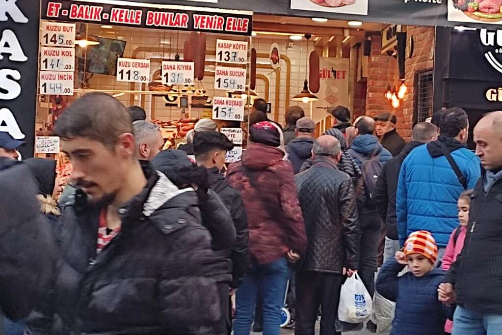 bursaekspress.com / BURSA (İGFA) - Bursa Fomara Meydanı'ndaki kasaplar et fiyatlarında indirime gidince vatandaşlar kasap dükkanlarının önünde uzun kuyruklar oluşturdu.