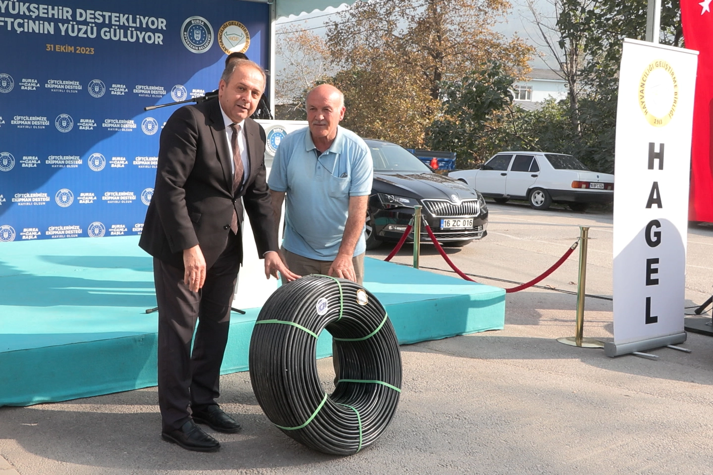 Büyükşehir Belediyesi, Bursa İli Hayvancılığı Geliştirme Birliği ve Gemlik İlçe Tarım ve Orman Müdürlüğü ile ortaklaşa gerçekleştirilen proje kapmasında, Gemlik ilçesine bağlı muhtelif mahallelerde 125 çiftçiye 250 top damlalıklı su borusu dağıtımı yapıldı.