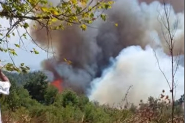 Orman Bölge Müdürlüğü ve itfaiye ekipleri, arazöz ve itfaiye araçlarıyla karadan müdahale ederken, iki helikopterle havadan destek sağlanıyor.