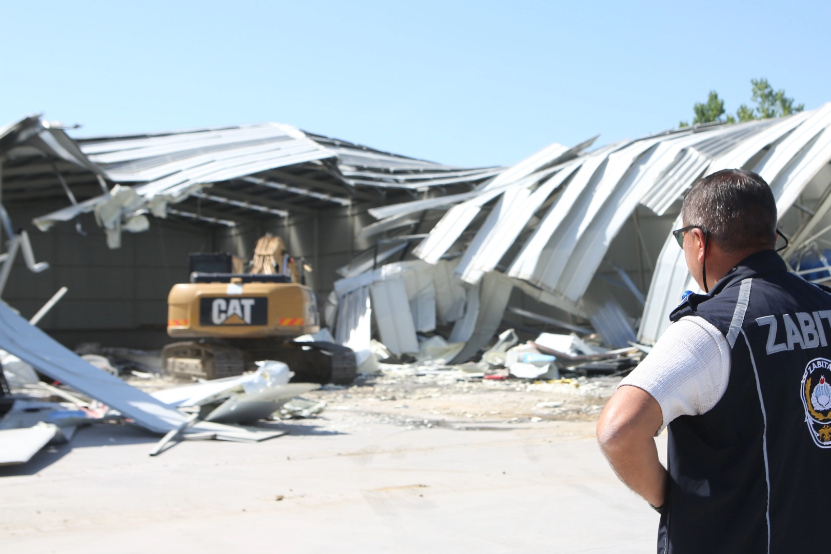 BURSA (İGFA) - Bursa Nilüfer Belediyesi, özellikle tarım alanlarına yapılmış kaçak yapılarla mücadelesine kararlılıkla devam ediyor. Belediye ekipleri tarafından tespit edilerek, yasal prosedürleri tamamlanan ruhsatsız yapılar yıkılıyor. Çevik kuvvet ve zabıta ekiplerinin güvenlik önlemleri çerçevesinde, Yaylacık Mahallesi’nde bin 500 metrekarelik bir depo tamamen yıkılırken, 280 metrekarelik depo da kullanılamaz hale getirildi.