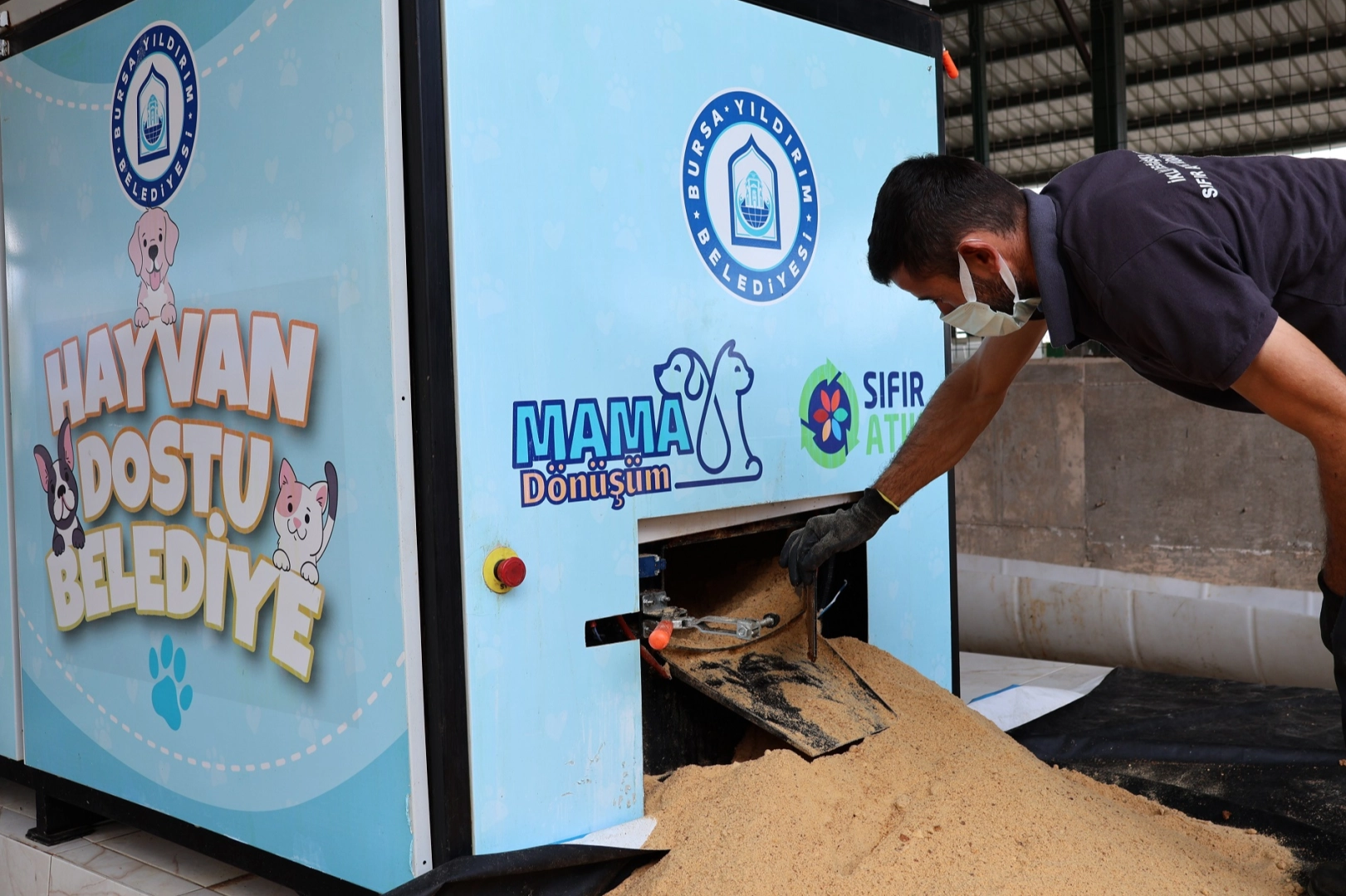 BURSA (İGFA)- Yıldırım Belediyesi Sıfır Atık ve İklim Değişikliği Müdürlüğü’nde kurulan Mama Üretim Tesisi ile haftalık toplanan 2 ton yemek atığı kedi ve köpeklerin yiyeceği hazır mamaya dönüşüyor.