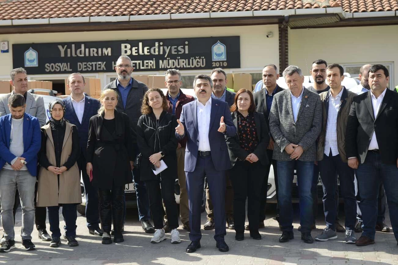 Bu kapsamda Ramazan ayının ilk gününde Sosyal Destek Müdürlüğü’nde buluşan Yıldırım Belediyesi müdürleri, başkan yardımcıları ve meclis üyelerinden oluşan yaklaşık 100 kişilik ekip aldığı erzak kolilerini gün boyunca ihtiyaç sahiplerine ulaştırıp vatandaşların taleplerini dinledi.